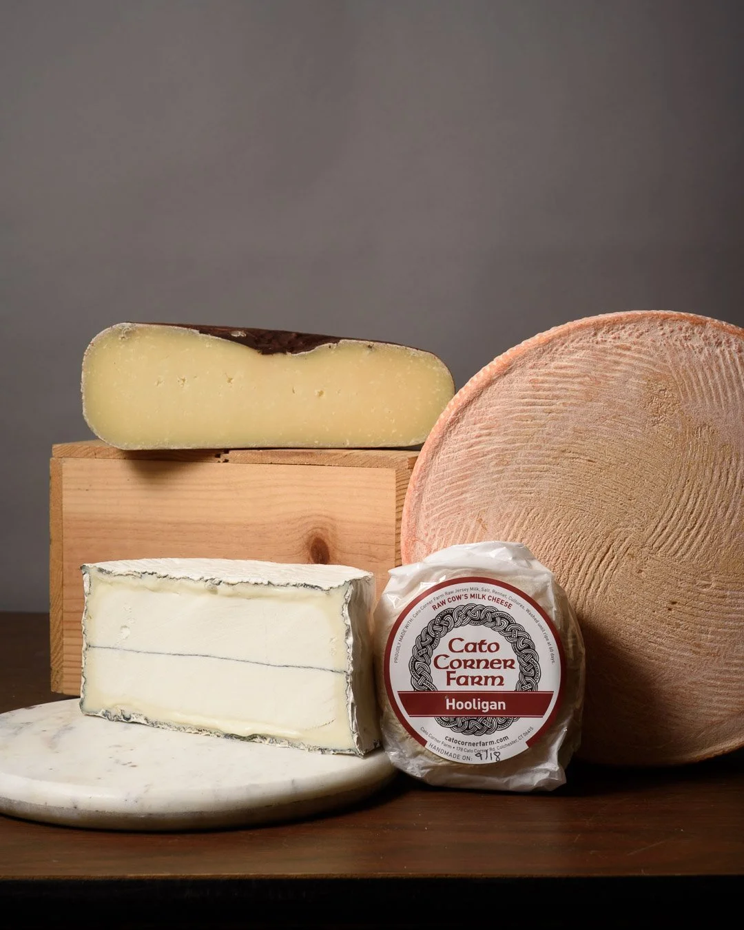 Colchester, Cato Farms, Arethusa, Jasper Hill, Milton Creamery, Quebec vintage cheddars and domestic blue cheeses.
